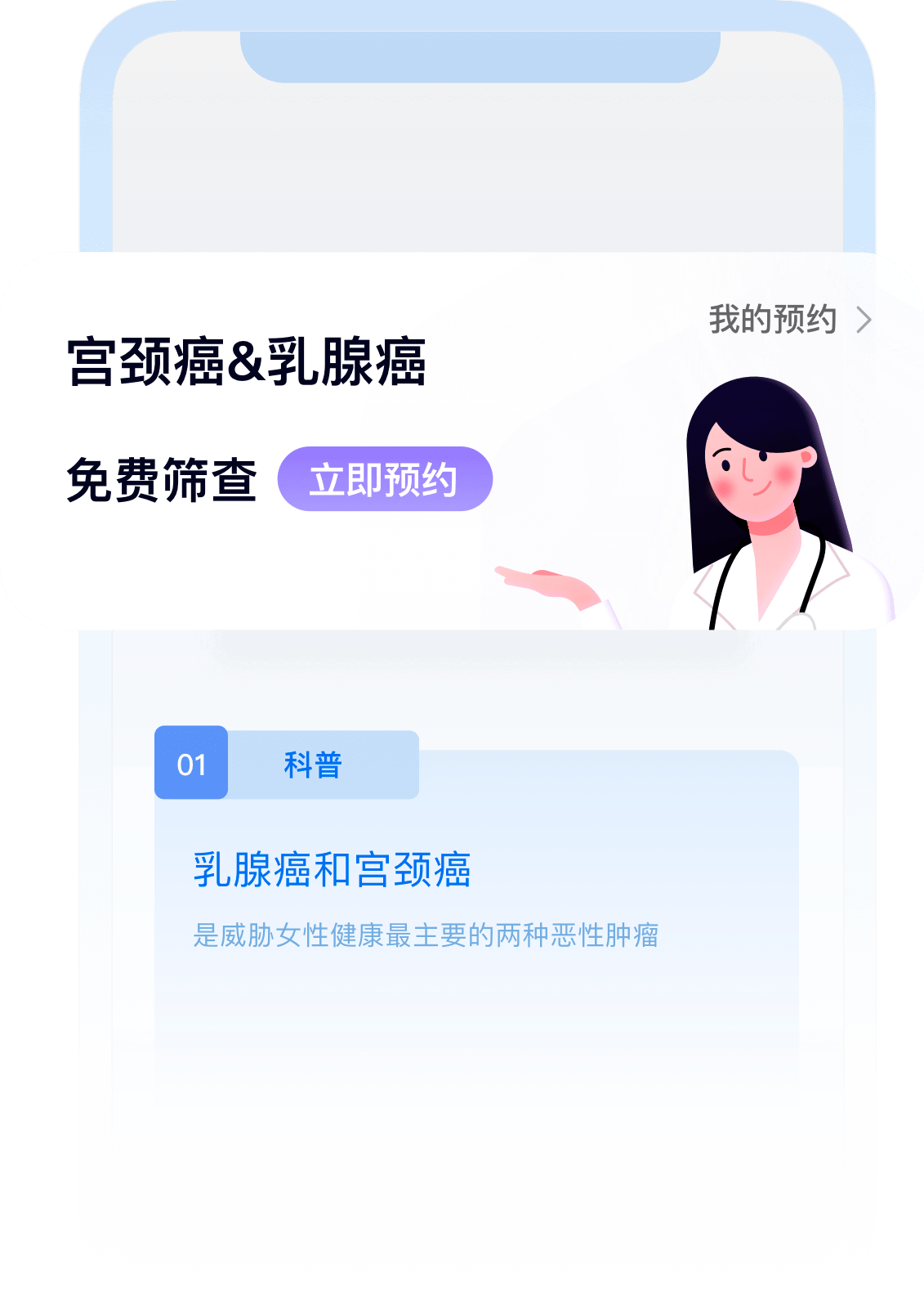 学习“两癌”健康科普知识,线上预约筛查服务。
